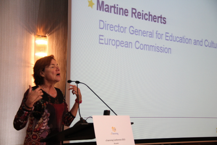 Si sono susseguite sul palco, Joëlle Milquet, vice presidente della Federazione della Vallonia e Ministro dell’ educazione, cultura e infanzia, la quale ha sottolineato l’importanza del ruolo degli insegnanti svolgono nel promuovere la comprensione interculturale e la tolleranza, e Martine Reicherts, direttore generale Education and Culture alla Commissione Europea, che ha ribadito come i gemellaggi eTwinning rappresentino delle risorse fondamentali per confrontarsi con l’altro e comprendere quanto le loro capacità applicate in concreto possono fare la differenza per il loro futuro e, di conseguenza, per il futuro di tutti.