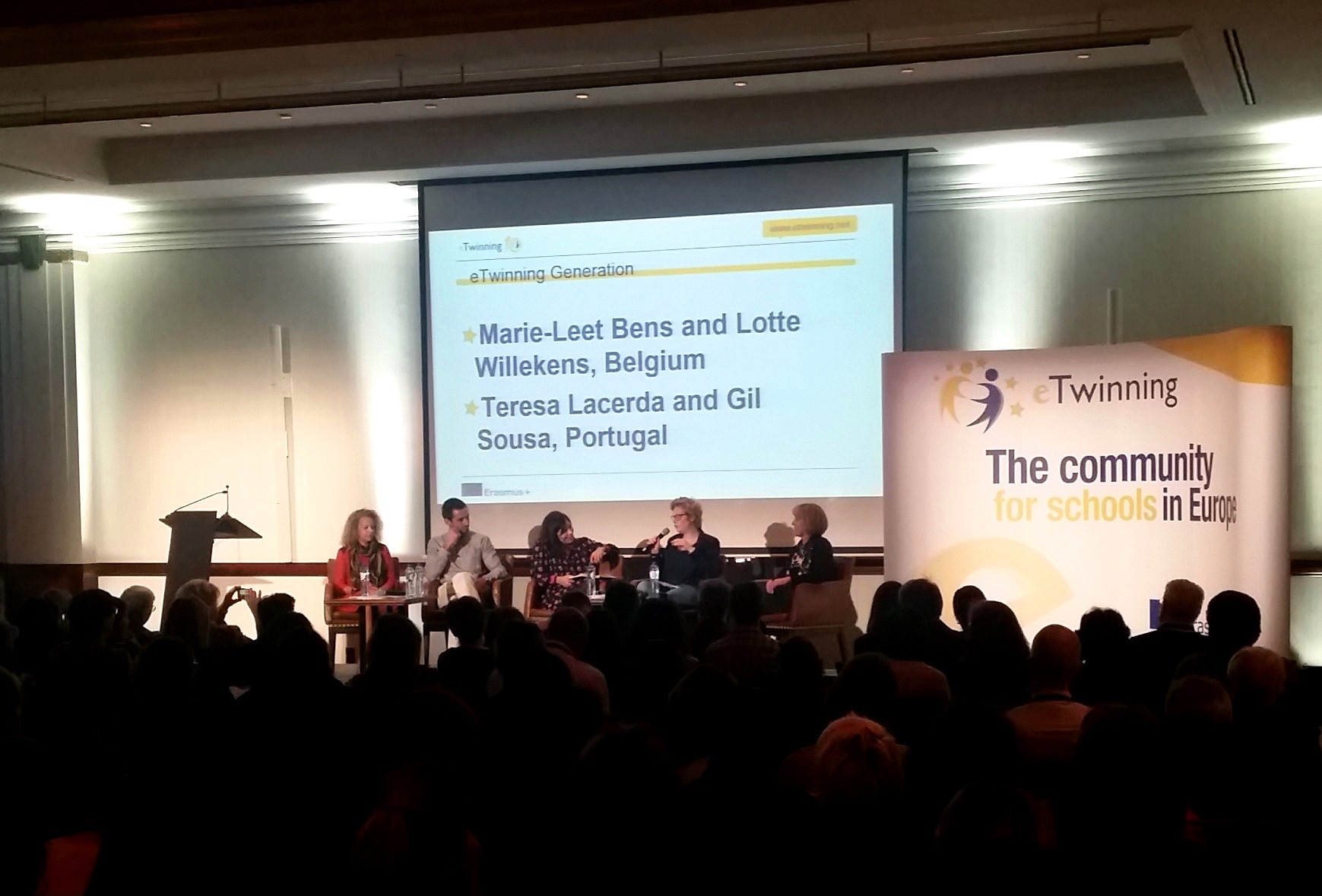 Dopo l’attività di formazione, con oltre 50 workshop che hanno visto ipegnati i partecipanti per tutta la seconda giornata (dettagli dei workshop nel programma). La parte conclusiva è stata dedicata a quella che viene definita la “Generazione eTwinning”, con gli interventi di due ex alunni eTwinning, adesso poco più che ventenni: Lotte Willekens e Gil Sousa, accompagnati dalle loro insegnanti, rispettivamente Marie Leet Bens e Teresa Lacerda.